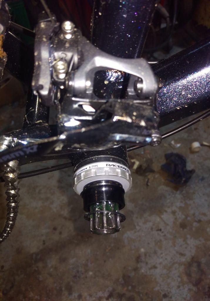 First of all, removing the stock crank arms was not easy! I bought a puller tool that would thread into the arm, but the crank is hollow, so there was nothing to push on with the puller’s center bolt. I wound up heating the right crank arm to maybe 200F, and then pounding on a steel rod inserted through the crank from the left, hitting the puller tool hard enough to drive the right arm off. LBS said it should be ‘self extracting, no tool required. Well, I don’t agree. My stock bearings would probably click if I tried to use them again. Not recommended, but I didn’t want to wait a day for the shop to do it.